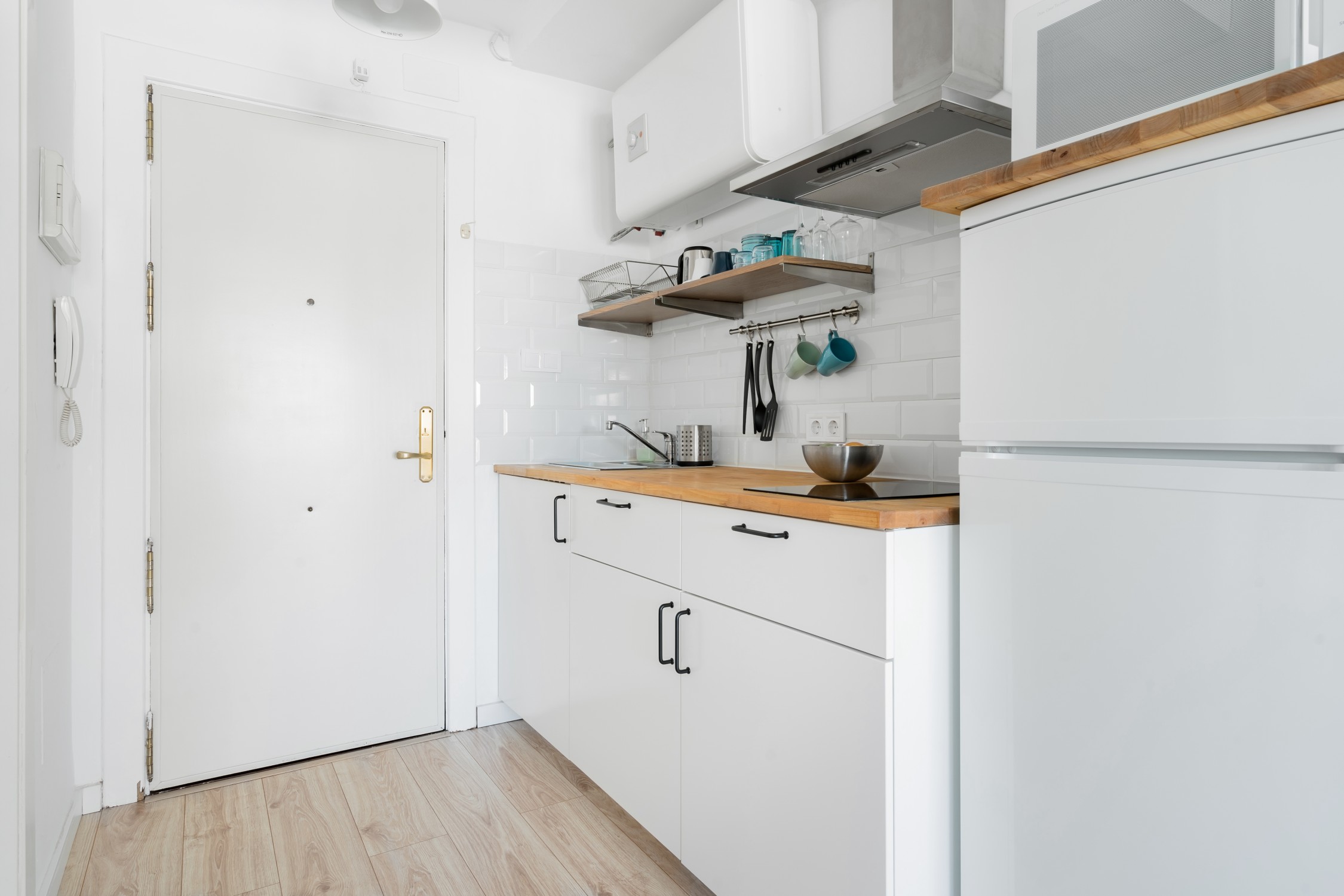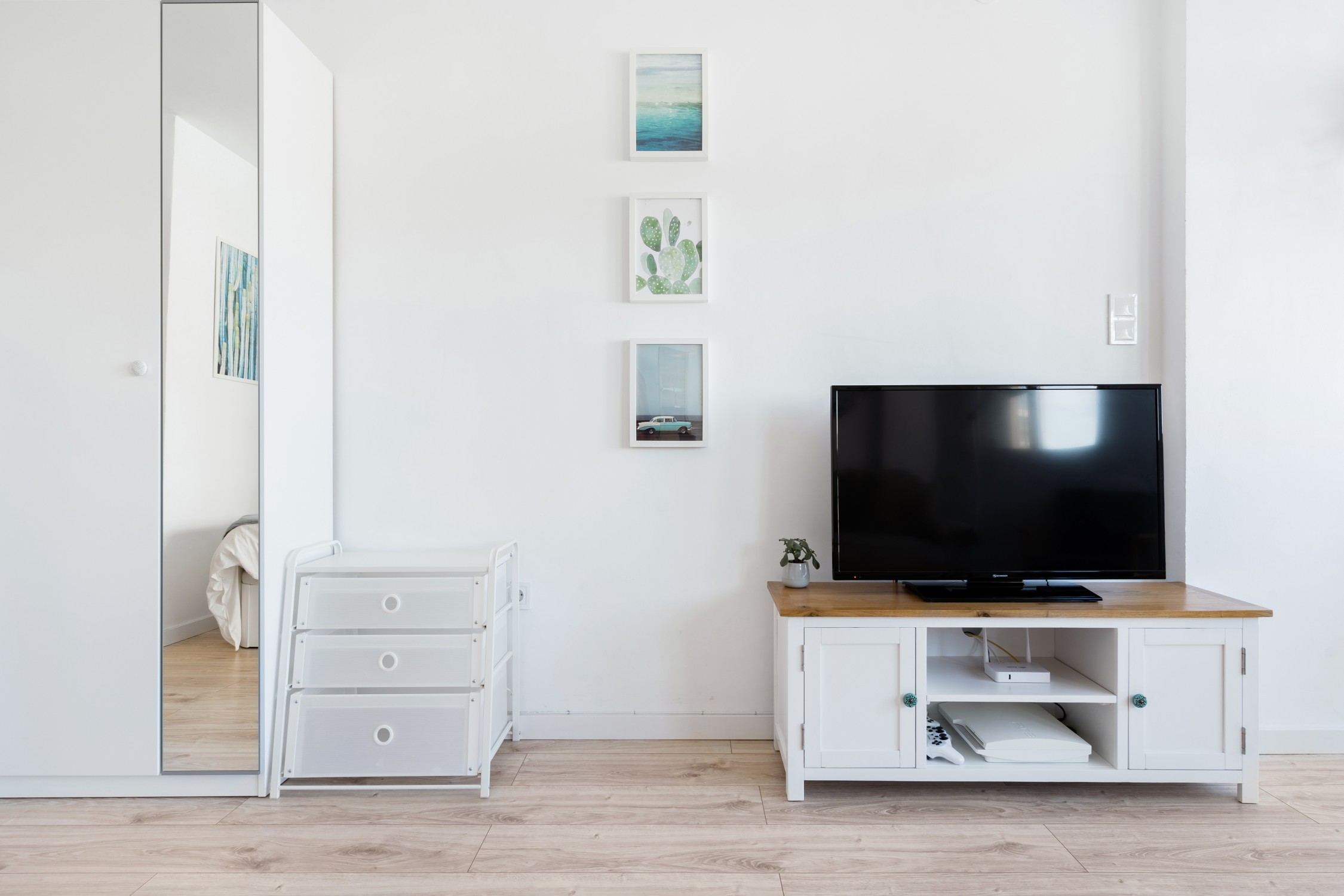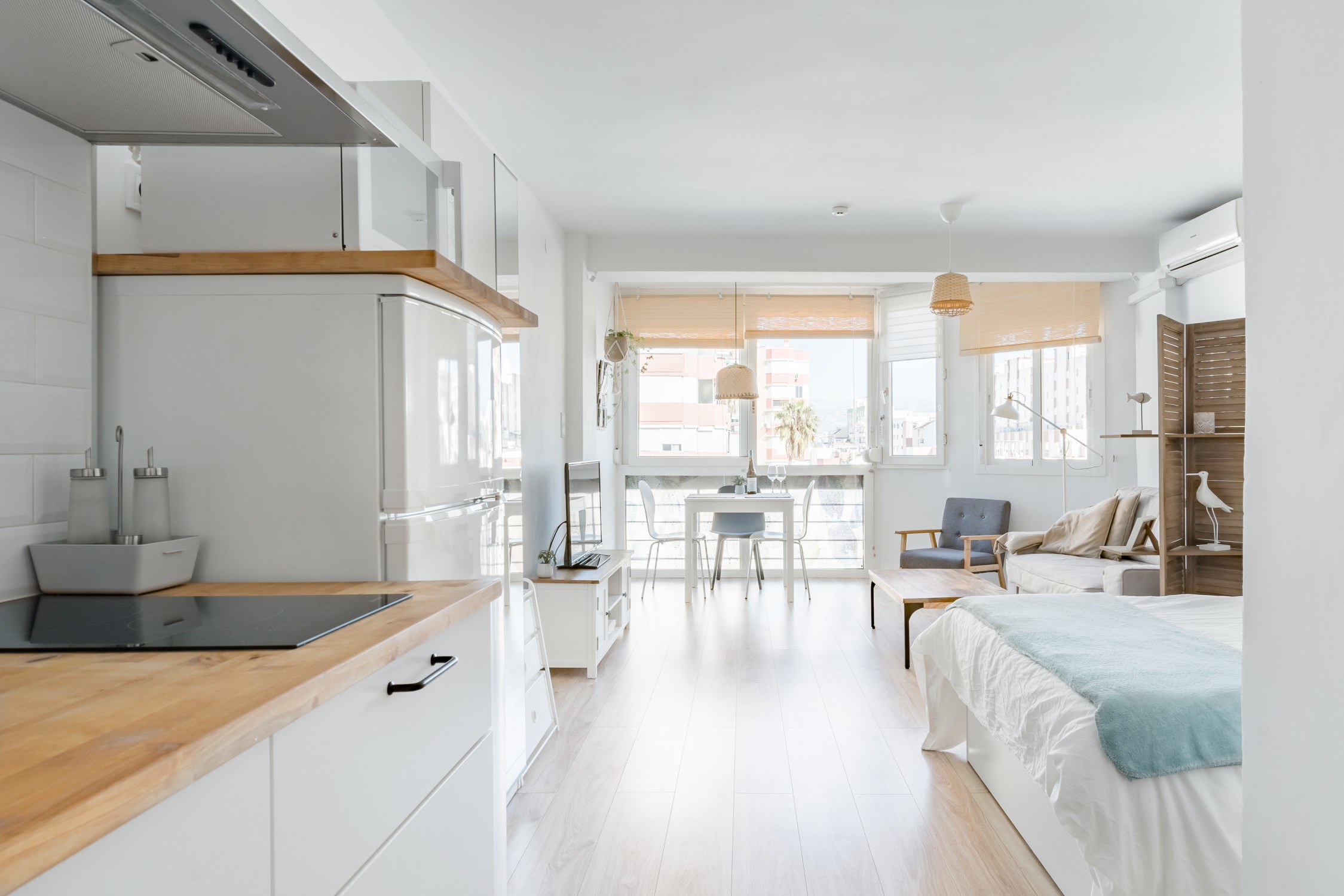 Estudio de 37 metros cuadrados con cocina equipada, lavadora, zona dormitorio con cama de matrimonio, baño completo con ducha y una zona de salón comedor con sofá cama, TV de 46 pulgadas, Internet WiFi, Playstation 3 con juegos y acceso a Netflix.