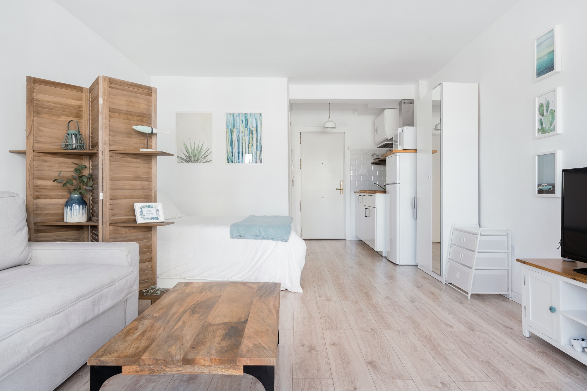 El estudio tiene vistas al mar y la playa está a escasos 100 metros, además dispone de acceso a piscina comunitaria de temporada (verano).