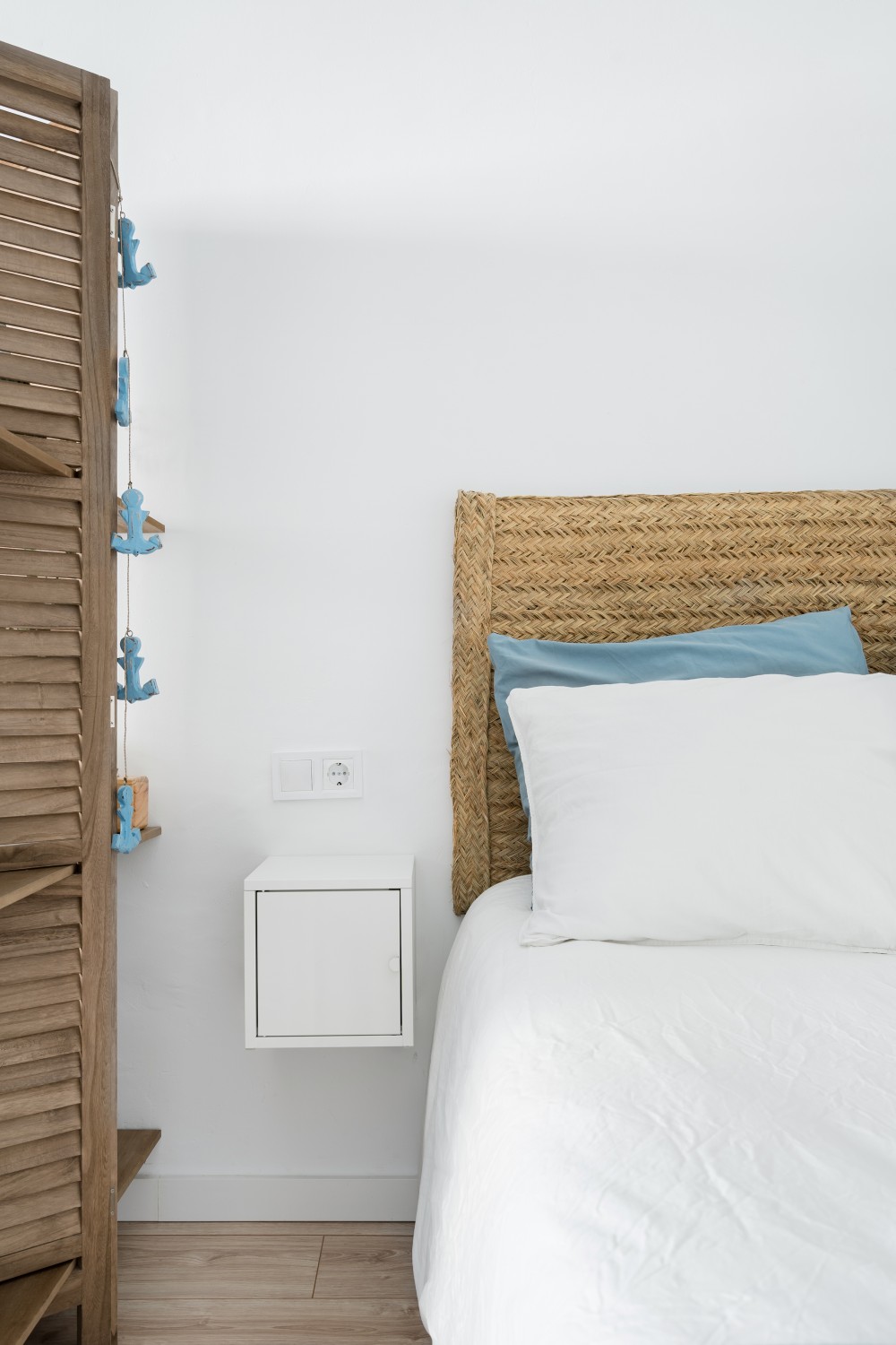 La zona dormitorio cuenta con una cómoda cama de 140 y un armario.